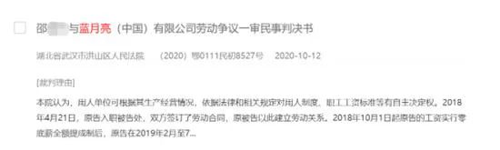 在这两起案件中,蓝月亮均为原告,目前暂不知蓝月亮起诉这两位员工是何缘由,结果也不得而知。不过,蓝月亮与邵某的另一起劳动纠纷案已于今年10月12日审理完毕。不同的是,彼时原告是邵某,被告是蓝月亮。