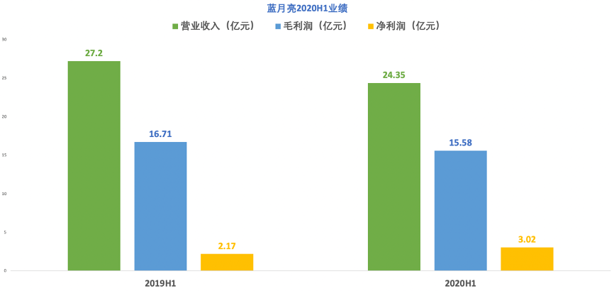 此外,2020H1的最新业绩则显示,蓝月亮的营业收入和毛利润有所下滑,估计是受疫情影响较大。但是公司的净利润仍从2019H1的2.17亿元增长至3.02亿元,主要是公司在销售费用、行政及管理费用上的开支有所减少。