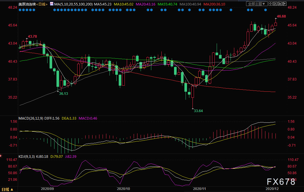总体而言,在美国刺激计划和新冠疫苗出现进一步利好消息前,油价短线面临一定的回调风险,也可能是高位震荡整理;但如果刺激计划和疫苗出现新的进展,布油有望顶破50整数关口,并启动新一轮涨势。