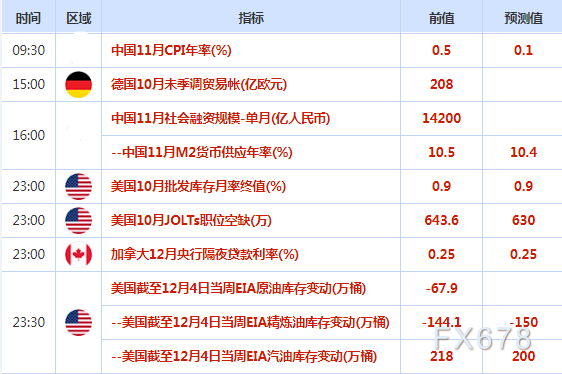周四(12月10日)关键词:欧洲央行利率决议、美国CPI数据