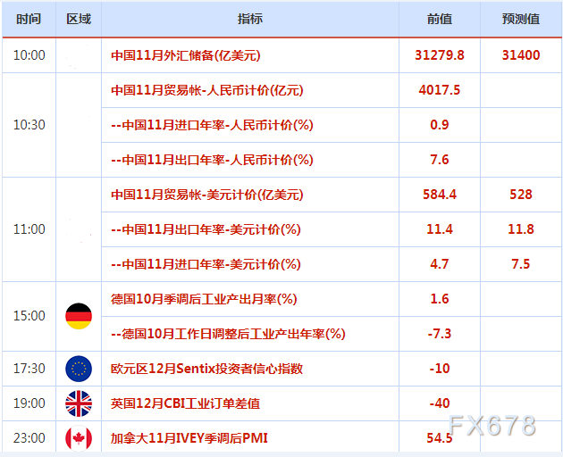 周一投资者需要重点关注中国11月的贸易数据,预计会对大宗商品和商品货币产生一些影响。