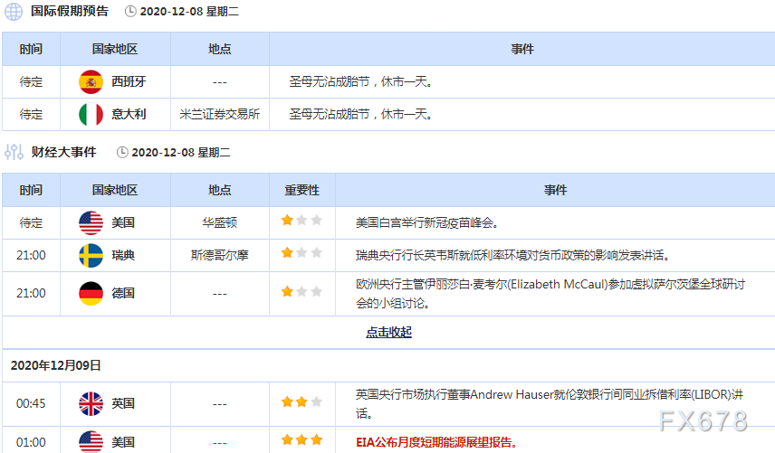 周二(12月8日)关键词:美国白宫举行新冠疫苗峰会、EIA公布月度短期能源展望报告