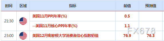 美国11月的PPI数据和美国12月密歇根大学消费者信心指数初值