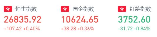上周五收盘,恒生指数涨107.42点或0.4%,报26835.92点,全日成交额达1722亿。国企指数涨0.36%,报10624.65点,红筹指数跌0.84%,报3752.6点。