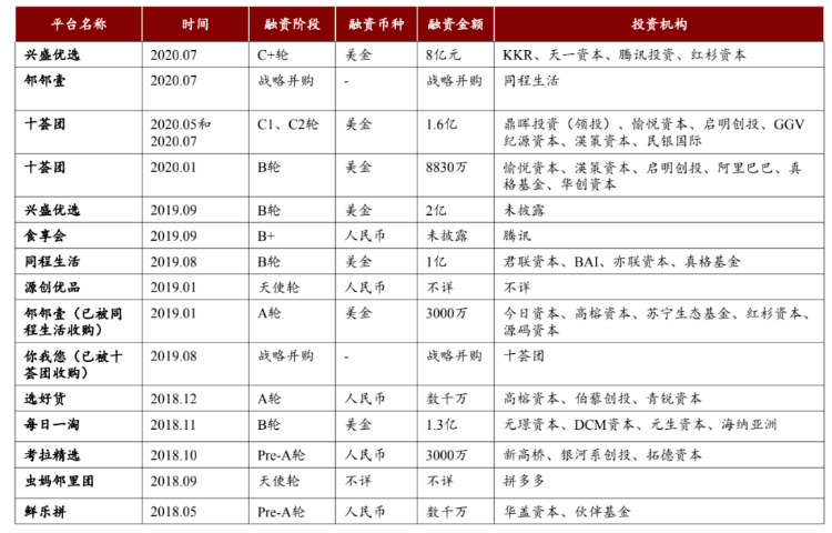 实际上在今年各大巨头介入这个市场之前,已经有很多中小创业公司进入了这个赛道之中。最早的兴盛优选,2014年就开始进入了这个赛道,目前平台活跃用户已经达到了数千万,日均订单超过700万单,在2019年,兴盛优选的年度GMV达到了100亿元。