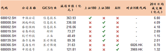 9家科创板企业因纳入沪股通可能带来的资金流入测算。目前北向资金累计净流入规模为1.2万亿元,若简单假定其中的被动资金比例在20%-50%之间,我们测算如若明年年初科创板企业允许加入沪股通,9家企业因此带来的潜在的被动资金流入规模可能在10-30亿元左右,规模较大的公司为中微公司(3.2-7.9亿元)、澜起科技(2.8-7.0亿元)等。