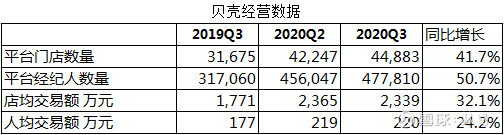事实上,在贝壳的核心ACN网络方面,财报数据也显示各项指标都在增强。截至2020年9月30日,贝壳平台连接的经纪门店数已超过4.4万家,连接的经纪人超过47.7万。客源方面,贝壳三季度移动月活跃用户(MAU)平均为4790万,同比增长82.1%。交易方面,基于ACN的跨店合作交易占比稳定在70%以上。