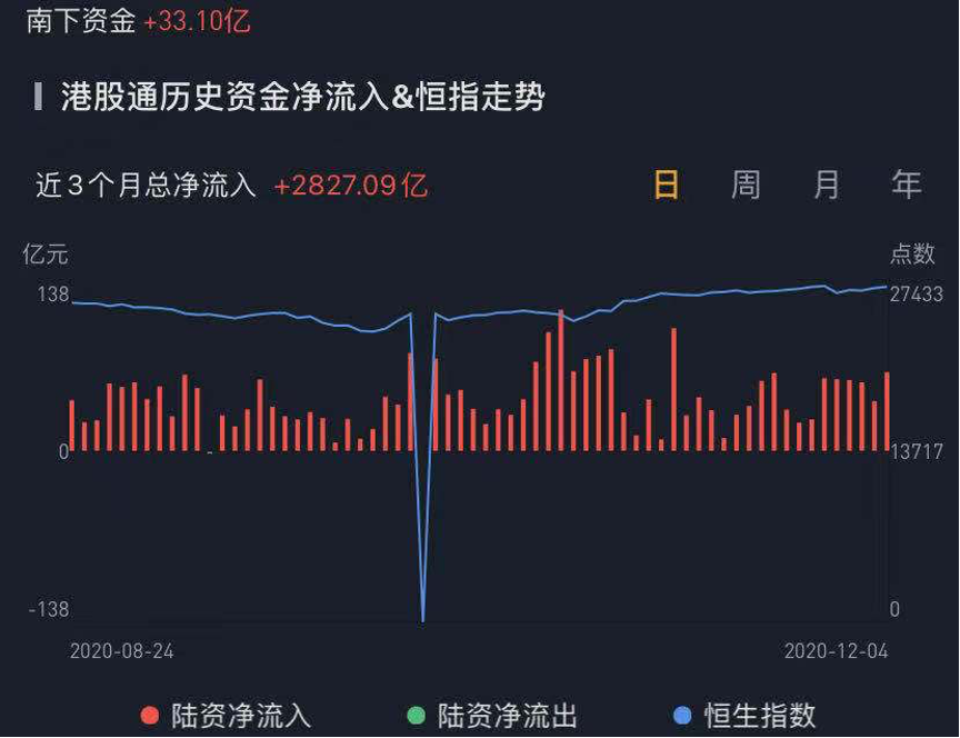 南下资金今日净流入港股33.10亿港元,流入规模有所降低,但整体仍维持高水位。