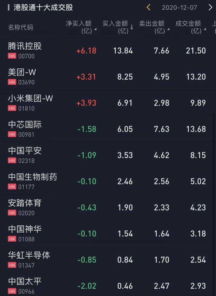 个股方面,今日南下资金净买入腾讯控股6.18亿港元,为今日买入之最。此外,南下资金净买入小米集团-W3.93亿港元,净买入美团-W3.31亿港元。南下资金净卖出中国太平2.02亿港元。