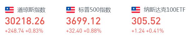 上周,道琼斯指数一周累涨1.03%,报30218.26点;标普500指数累涨1.67%,报3699.12点;纳斯达克指数涨2.12%,报12464.23点。