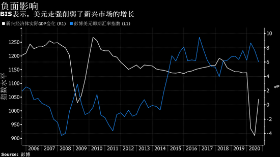 BIS确定了美元走强挤压新兴市场增长的四种主要方式:刺激资本外流、影响美元信贷供应、限制本币市场上的银行以及削弱贸易流量。