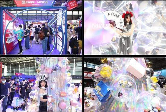 在今年的ChinaJoy上,名创优品携主推全系列盲盒及漫威、米奇、王者荣耀3大IP周边登陆,其潮玩展区借助大型盲盒瀑布树、盲盒机、镜面万花筒等创意新潮装置吸引了众多年轻人前来打卡。