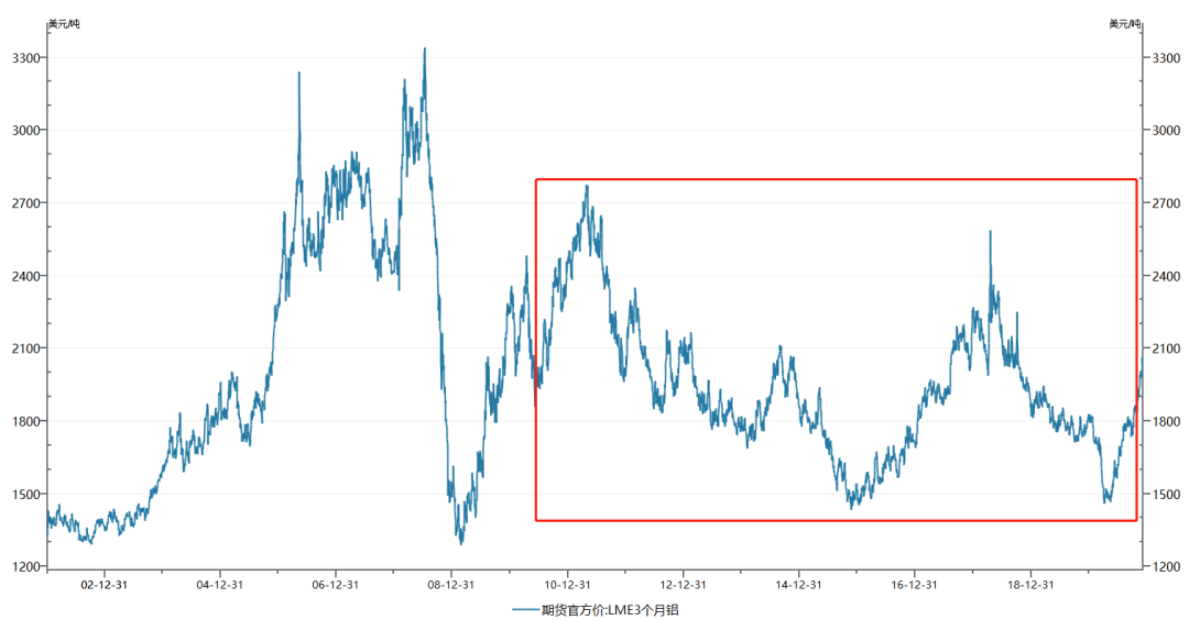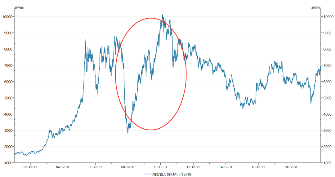 相反,作为基本金属的铜,走势就相对稳定,除了2008年金融危机跌到底部3000美元/吨,前后的价差其实不大。
