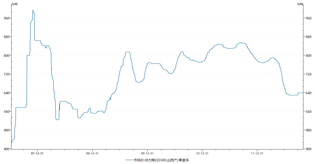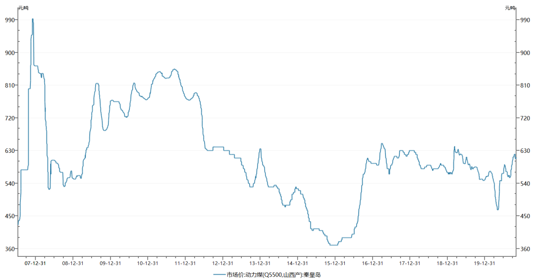 股价大涨的背后,是煤炭价格不断走高。2007年秦皇岛5500动力煤价从5月份的426元/吨,到12月份涨到983元/吨,走势快赶上美股的新能源三宝。