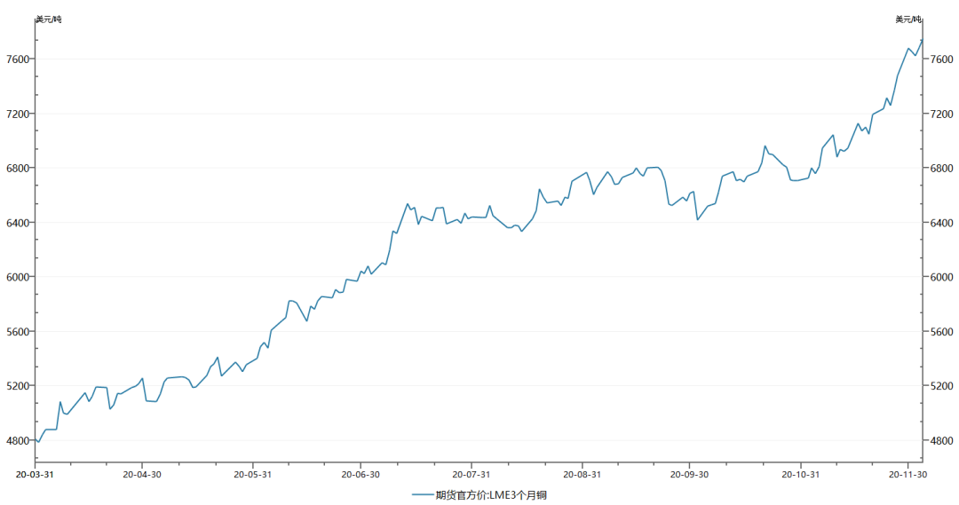 工业金属的涨幅更夸张,LME期货官方铜价从3月份的5000美元/吨,上涨至7600美元/吨,上涨幅度52%。