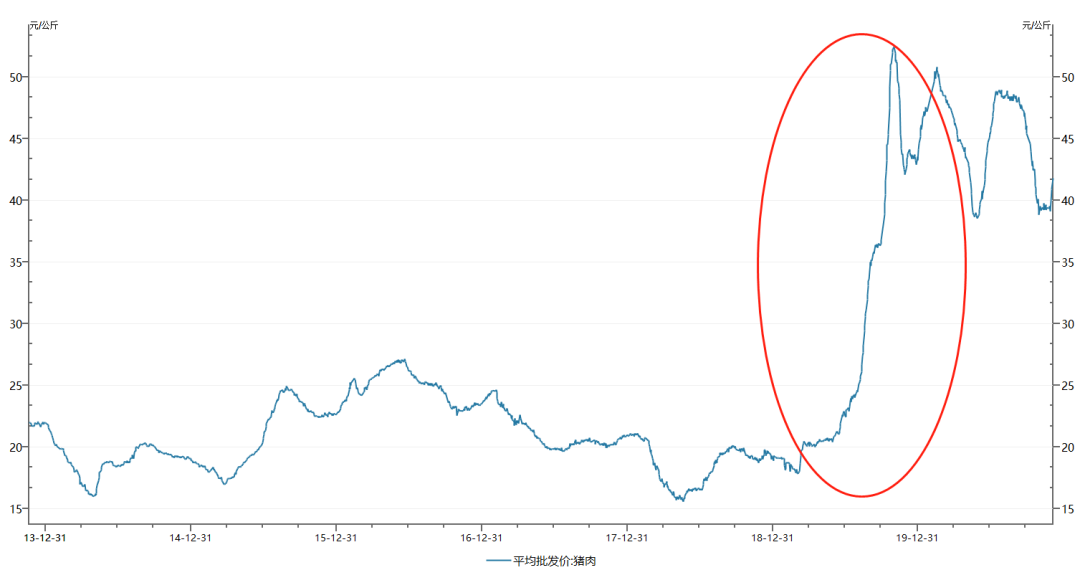 于是猪肉的价格迎来了暴涨,平均批发价从平时20 - 30元/公斤的价格,一下翻倍到50元/公斤。