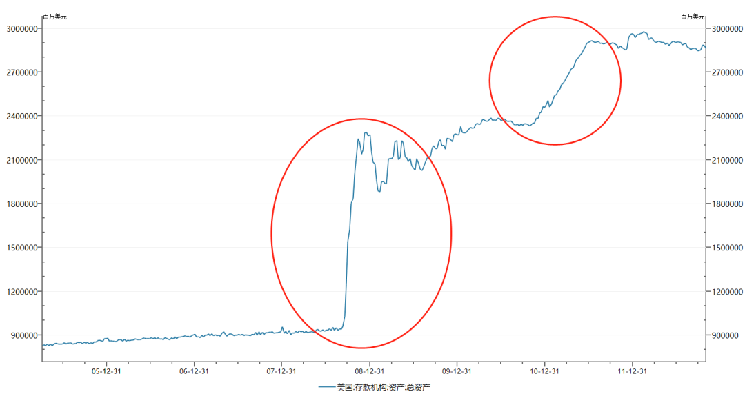 当美联储的总资产从2008年的9000亿美元,到2011年上升至29000亿美元的规模。