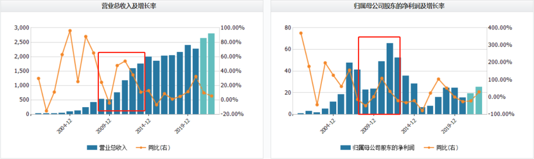 另外还有江西铜业,营收增速和利润表现在2009- 2011年都达到顶峰。