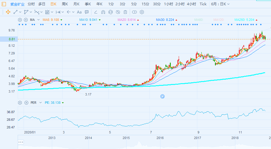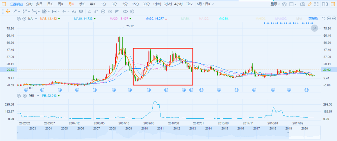 江西铜业的股价涨幅虽然没有山东黄金夸张,但是也有4倍- 5倍的回报。