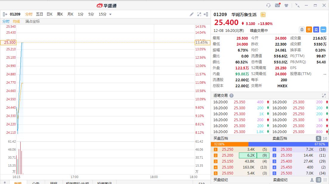 此前公布配售结果显示,华润万象生活公开发售获29.78倍认购,每股发行价22.3港元;每手200股,一手中签率100%。