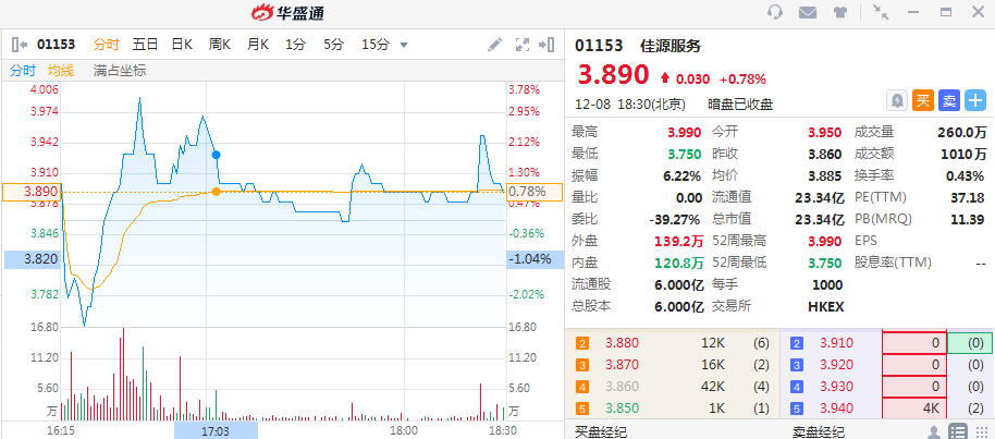 华盛资讯12月8日消息,华润万象生活(01209) 暗盘收盘报价29.35港元,涨幅为31.61%,一手账面盈利1410港元,最新成交额3.2亿港元,总市值为645.7亿港元,另一只新股佳源服务(01153)微幅收涨0.78%,最新成交额1010万港元,总市值23.34亿港元。两只新股将于12月9日正式上市。