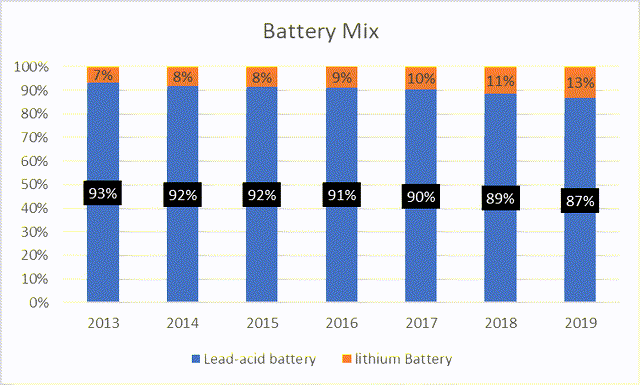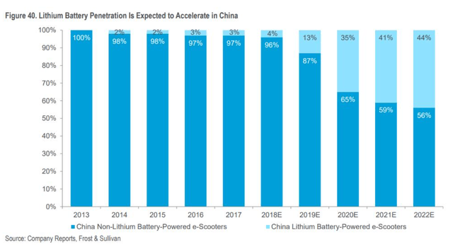 第二,该公司首席执行官评论说,锂电池的渗透率在2020年可能在20%-30%的范围内,这大大低于Frost & Sullivan提供的预测。