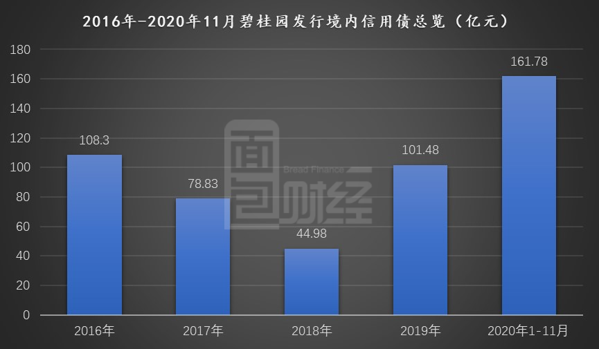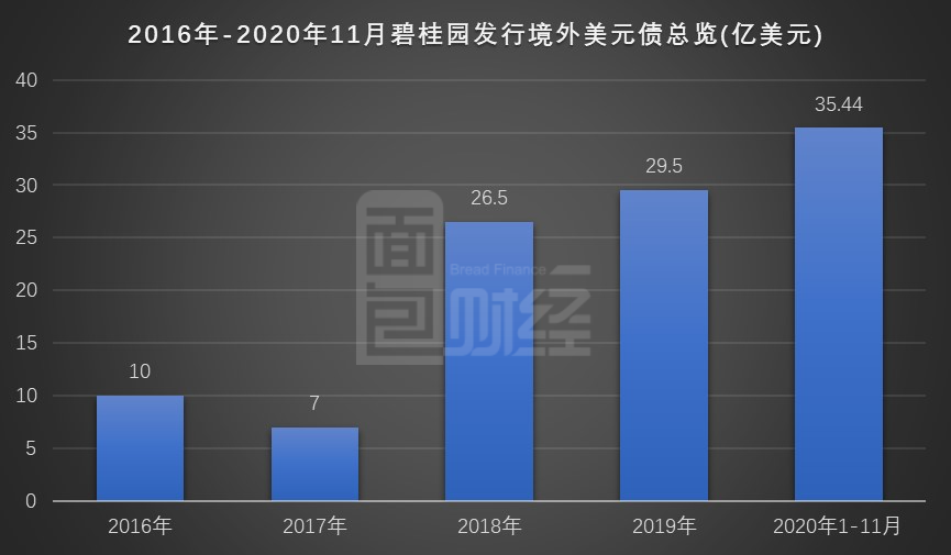 2020年1-11月,碧桂园总计发行境外美元债35.44亿元,较2019年全年增长20.14%。