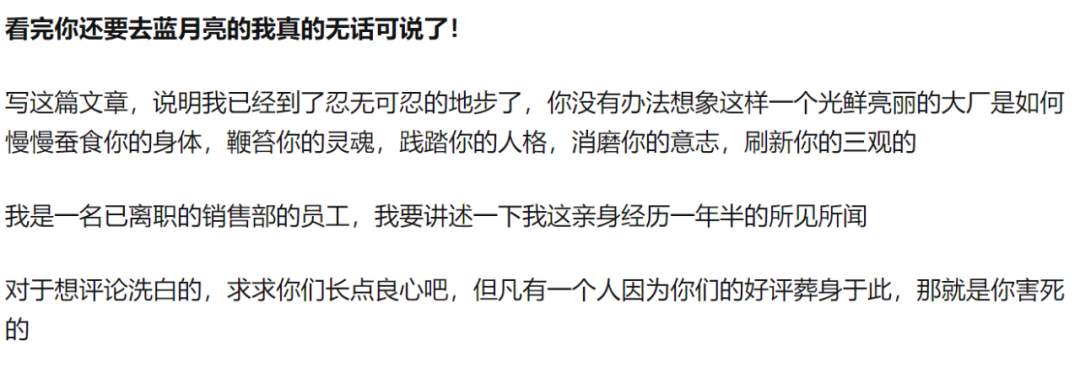 再次是劳资关系问题。动用搜索引擎,蜜友会发现关于蓝月亮的吐槽文众多,主要集中在劳资关系上,比如拖欠工资等,点赞评论的众多。