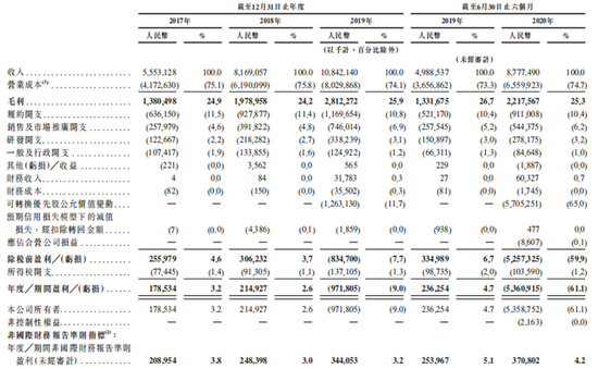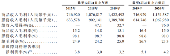 根据招股书,2017-2019年,京东健康分别实现营业收入55.53亿元、81.69亿元、108.42亿元,年复合增长率24.99%;2020年上半年,京东健康实现营业收入87.77亿元,同比增长75.93%。