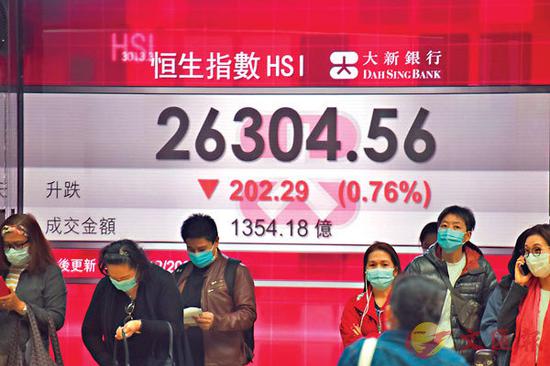 ■港府再度收紧防疫措施,港股昨天再挫202点报26,304点。中通社