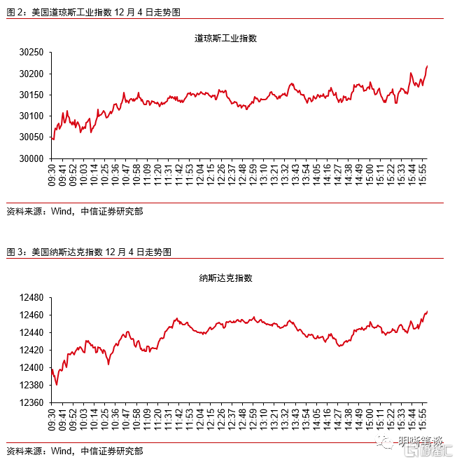 但表现疲软的非农数据并未压制市场的风险情绪,相反在非农数据发布当天美国三大股指高开高走录得明显上涨,从原因来看非农数据较差加重了市场对于美国新一轮财政刺激的憧憬,因此从对市场走势的影响角度,美国新一轮财政政策的前景变化仍旧是近期海外市场需要关注的一个重点。虽然11月非农数据表现疲软,但是从美股市场当天的表现来看,非农数据非但没有压制当日的风险情绪,三大股指反倒高开高走录得明显上涨,道指12月4日报收30218.26点,当日涨幅0.83%;纳指报收12464.23点,当日涨幅0.70%;标普500报收3699.12,当日涨幅0.88%。从原因上来看,我们认为股市如此反应的原因或在于,此前在失业率持续下降,非农就业人数持续修复背景下,可能国会在达成财政刺激计划的迫切性上也受到了影响。而11月份的非农就业人数或给美国国会敲响了警钟,市场对于新一轮财政刺激的憧憬也有所增加,因此从对市场走势的影响角度,美国新一轮财政政策的前景变化仍旧是近期海外市场需要关注的一个重点。