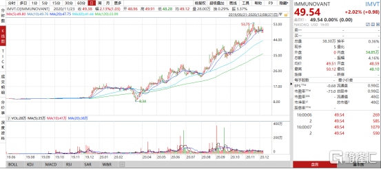 参考巴托利单抗的美国及其他地区权益开发者Immunovant(IMVT.US)走势,随着公司产品不断推进,公司股价一路走高,截至12月8日收盘49.54美元,市值达到48亿美元。和铂医药与Immunovant在巴托利单抗的开发进度上都处于首批适应症的临床开发阶段。而公司除巴托利单抗之外,还具有多条极具想象空间的产品管线,包括在肿瘤免疫领域拥有全球市场权益的重链抗体及双特异性抗体药物。参考Immunovant的市值和产品管线及研发进度,加上和铂医药在肿瘤免疫治疗领域取得的成绩,我们认为公司目前的市值被明显低估。