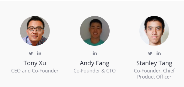 目前,三位华人创始人中Tony Xu任职公司CEO,Andy Fang任职CTO, Stanley Tang任职CPO。