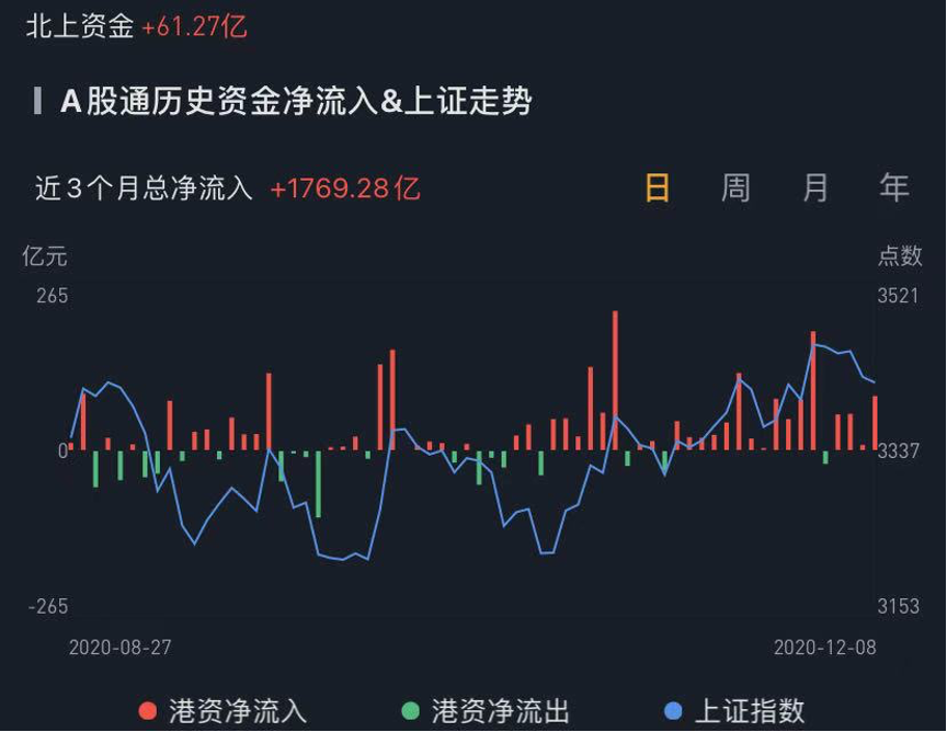 北上资金今日净流入A股61.27亿元,流入规则较昨日略微减少。