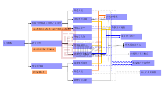 2020年以来,随着“三道红线”消息传出,房企融资环境进入收紧阶段,“去杠杆、降负债”成为多数房企今年剩余时间的主要任务之一。“三道红线”具体指剔除预收款后的资产负债率大于70%、净负债率大于100%、现金短债比小于1.0倍。