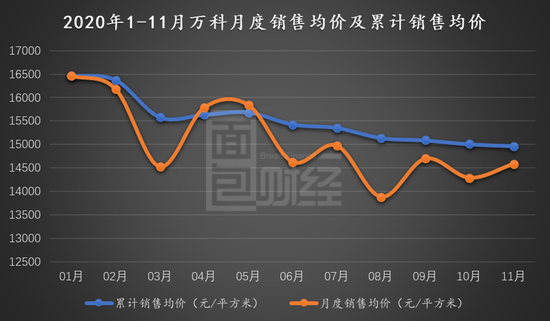 销售均价方面,根据公司销售额及销售面积计算,2020年11月,万科当月销售均价为14589.25元/平方米,环比增加2.08%,同比下降2.5%。1-11月,万科累计销售均价为14970.56元/平方米,环比下降0.28%,同比下降3.48%。