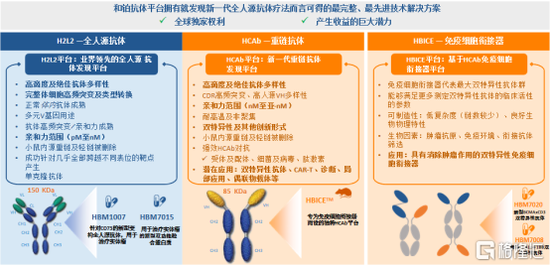 (3)HBICETM为公司基于免疫细胞衔接器概念自主研发的双抗平台,专注于生成特定双抗,在肿瘤免疫治疗领域有着广阔的空间,例如HBM7020,HBM7008等在研产品。