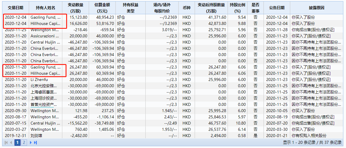 11月24日,高瓴资本通过大宗交易方式入资先健科技(入股约6亿港元),成为公司重要股东。随后又在12月4日先健科技的配股中以3.2368港元增持1.6626亿股,耗资约5.38亿港元,持股比例增至9.88%。