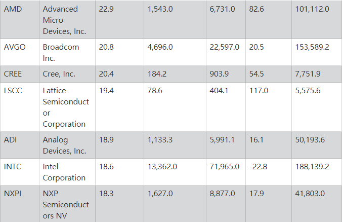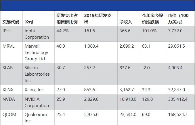 《巴伦周刊》芯片股指数PHLX Semiconductor中的研发投入最多的公司进行了筛选。
