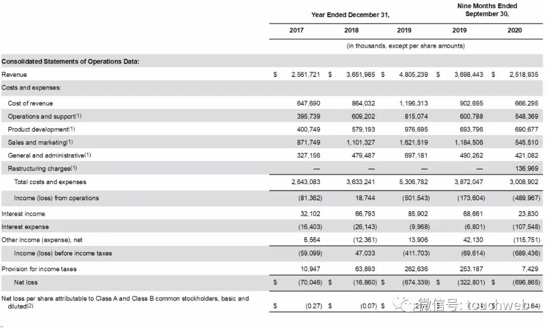 招股书显示,Airbnb在2017年、2018年、2019年营收分别为25.61亿美元、36.52亿美元、48亿美元;Airbnb在2020年前9个月营收为25.19亿美元,上年同期的营收为36.98亿美元。