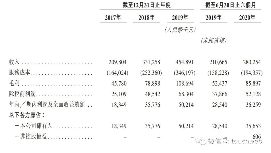 佳源服务2017年、2018年、2019年期内利润分别为1835万元、3578万元、5021万元;2020年上半年期内利润为3626万元,上年同期的期内利润为2854万元。