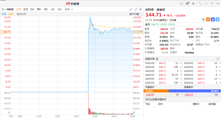 Airbnb首日暴涨超112%,市值超864亿美元顶两个万豪