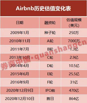 下表是爱彼迎的历史融资记录: