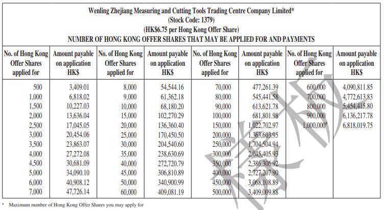 华盛资讯12月11日消息,温岭工量刃具(01379)今日发布公告,该公司于今日至12月16日招股,拟发行2000万股,其中香港发售占10%,国际配售占90%,另附有15%超额配股权,每股发售价6.25港元-6.75港元,每手500股,入场费3409.01港元,保荐人为信达国际。预期于2020年12月30日上午九时正开始在联交所买卖。