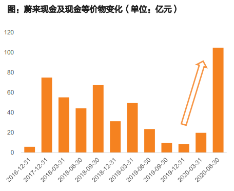 蔚来从2019Q3起股东权益转负,且出现资金链断裂风险,但20年凭借1)2020Q1的可转债融资;2)合肥市政府(合肥建投、国投招商、安徽高新)70亿战略融资;3)中、农、工、建安徽省分行,兴业、招商合肥分行104亿综合授信;4)ES6、改款ES8销量增长经营现金持续流入,蔚来账面资金大幅回升至百亿以上,短期资金风险解除,权益由负转正。正是凭借着融资能力,蔚来才能从即将破产的企业,摇身一变成大牛股。