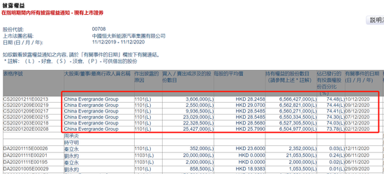 12月11日消息,中国恒大全资附属公司China Evergrande Group12月6度增持恒大汽车,最新持股74.48%,今日耗资1.02亿,6度增持累计耗资约24亿。