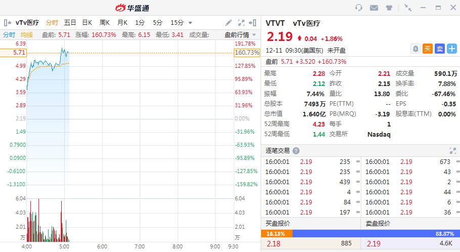 个股方面,生物制药公司VTV THERAPEUTICS (VTVT)盘前涨超160%,此前与Stephen Holcombe签订新的合作协议。