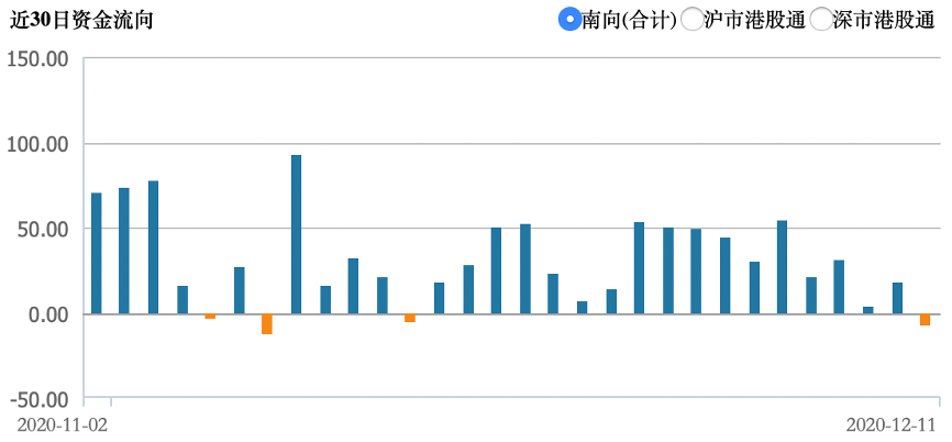 南下资金净流入港股约67亿港元,环比大幅减少约160亿港元