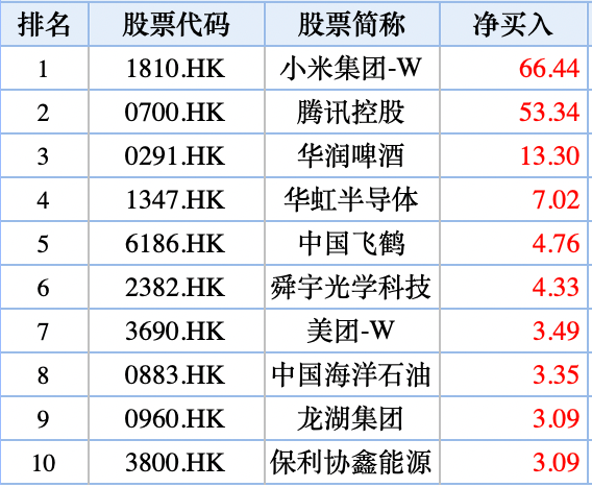 内资加仓小米、腾讯、华润啤酒,抛售吉利汽车、中生制药;