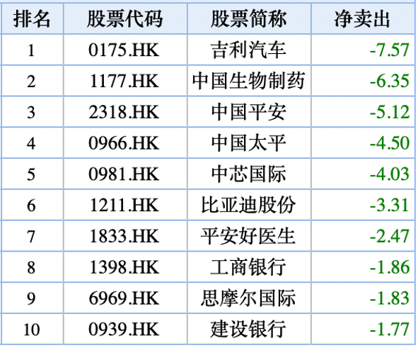 本周,南下资金抛售吉利汽车7.57亿港元,连续两周位列抛售第一。此外,中国生物制药、中国平安、中国太平、中芯国际、比亚迪股份、平安好医生、工商银行等个股也遭到内资抛售。